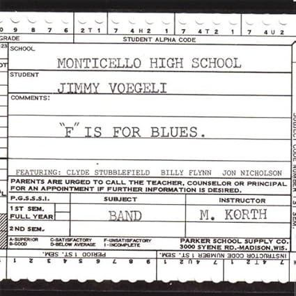Jimmy Voegeli – an excellent keyboard player – had a similar experience, as evidenced by his high school report card he eventually used as his CD cover on “F is for Blues”