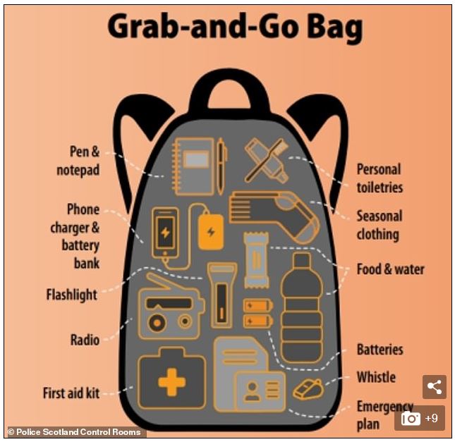 Police Scotland and Cambridgeshire Fire & Rescue both unwittingly drew scorn from Twitter users after posting images of the bags, similar to survival packs suggested by US Homeland Security around times of flooding or earthquakes.
