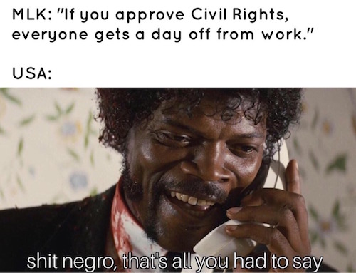 Wherein we drag ourselves out of bed to face the horror of another week… wait a minute, it’s Martin Luther King Day!!! (a.k.a the holiday celebrated by many, while others go “Who?”)