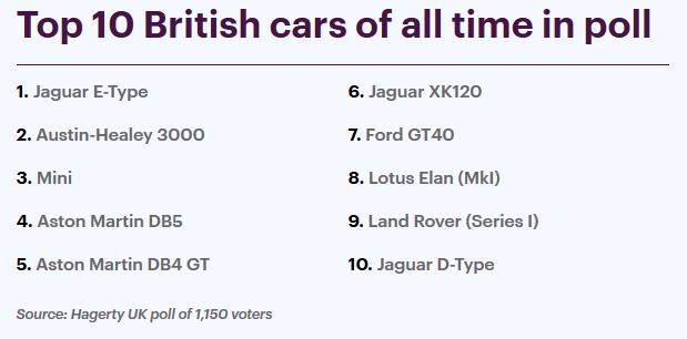 The Poll was done by an American Insurance company Hagerty. The report comes from a British Newspaper. But if the question is Best British Car and not most popular, then the list is different.
