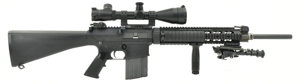 Early production sr25. He tried to sell that to the military. They informed him that it was not acceptable, and would remain so unless he got his act together and copied the proper built-in brass deflector that issue AR’s had had for a couple decades.