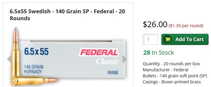 Even worse is that a cursory scrutiny of my favorite online ammo pushers’ websites reveals that not only are they out of stock of most ammo calibers, they aren’t even letting us know when the replacement stocks will arrive. And frankly, going to four different websites just to scrape up five boxes of 6.5x55mm to make the mandatory 100-round NAD minimum seems to be not worth the effort.