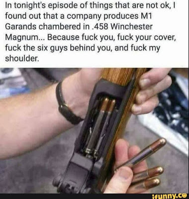 I thought Mcann stopped making the .458 Winchester Garand. Out of sympathy for your shoulder, they did put a mercury tube in the stock and a major Muzzle Brake on the front.
