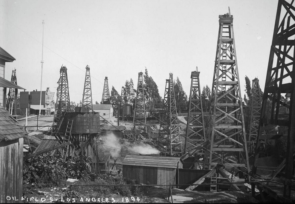 Those photos appear to span the time from at least 1894 (I didn’t even know there *was* an oil industry then) to the late ’30s/early ’40s, judging by the cars. I wonder when all the derricks were finally torn down?