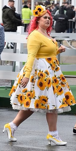 Every time you post these Aintree pics, I look at the rainments and think, “You know she looked at herself, in a mirror, and said “”Wow, I look good “””. The sad part is they seem to have no friends or family that speak up and tell them that they look like a derelict building with graffiti on it.