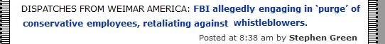 The FBI is purging conservatives? I believe every agency is getting rid of anyone with a conservative approach. I’m sure if you show a leftist bias, then you’d get overlooked while someone showing a conservative bias would be excoriated and expelled from the government.