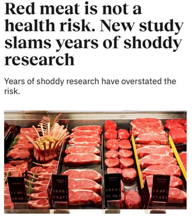 Of course red meat isn’t bad for you, it’s the fuzzy blue-green meat that’s bad for you.