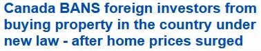 Trudeldumber, the bastard commie son of Mrs. Trudeledumb and Fidel Castro, banning me from selling my inflationary valued rental residential properties to foreigners means that I will have to take a reduced pre-inflation price if I am forced to sell if old age or Trudeldumber inspired apoplectic rage strike me down.