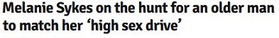 I’d be happy to buy Melanie Sykes a hamburger, but if she’s after an older man to satisfy a high sex drive, there are some things she needs to learn about biology.