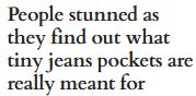 Certainly not one that required the use of the tiny pockets found on blue jeans.