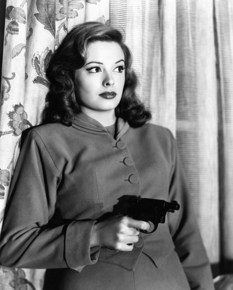 Of course, no look at a noir actress would be complete without a gun: