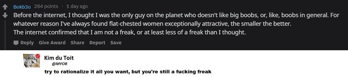 Yeah, I know I’m a freak. I prefer small boobs and seem to be the only human male on planet Earth who doesn’t find Scarlet Johanssen the least bit attractive. I can live with that.