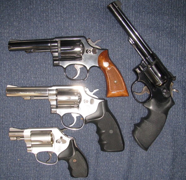 It has been quite a while since I took my revolvers out for some air — I speak here not of the .22 revolvers, but the meatier ones — and as I was packing the range bag, I thought I’d drop in a quick pic of some of the old S&W warriors: