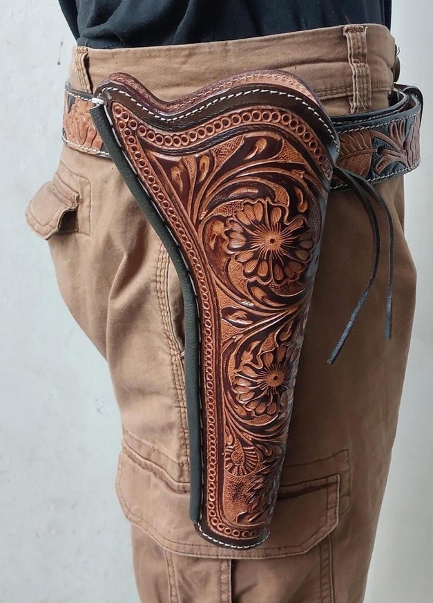Your holster too would be a showpiece, not an IWB (inside the waistband) type. Depending on the state, it could be unadorned or else festooned with things like silver buckles, turquoise stones and fringes.