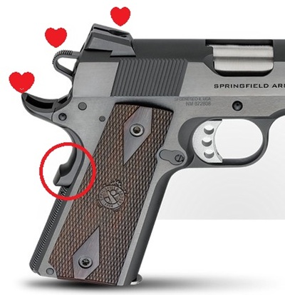 Of course, there’s a lot to like about this gun (it’s a 1911, for starters): Novak-style sights, lightweight hammer, beavertail grip (hammer bite, for the alleviation of), to mention just some.