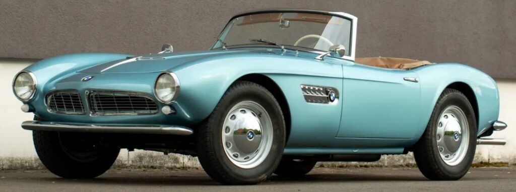 As anyone should know, this was BMW’s competitor to the Mercedes 300 Gullwing, in that it had a 3.2-liter V8 inside a lightweight chassis. It nearly bankrupted BMW back then because the market wasn’t willing to spend what amounted to a king’s ransom back then on a car that wasn’t a Gullwing, or (in the U.S.) a similarly-powered Corvette that cost a lot less.