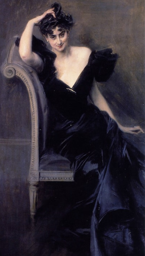 I may have mentioned before that one of my favorite artists, Giovanni Boldini, made a name for himself as a portrait artist during the late 1800s and early 20th century. But I didn’t feature too many of those portraits — which oversight I’m now going to rectify.