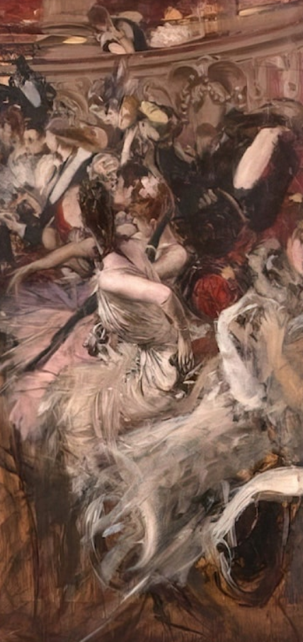 But just in case you were getting sick of all those society dames, here’s another of my non-portrait Boldini favorites, At The Paris Opera: