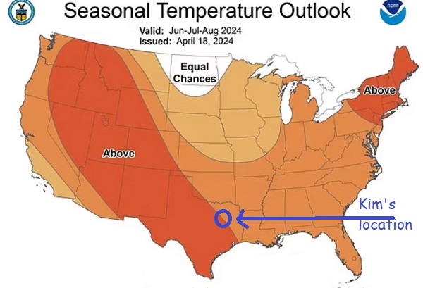 And all you guys in the northern states can quit your sniggering now. If ever I leave Texas — highly unlikely, absent a lottery win, and maybe not even then — it would be to escape the sweltering Texas summers, which are no damn joke (as much as we make jokes about them).